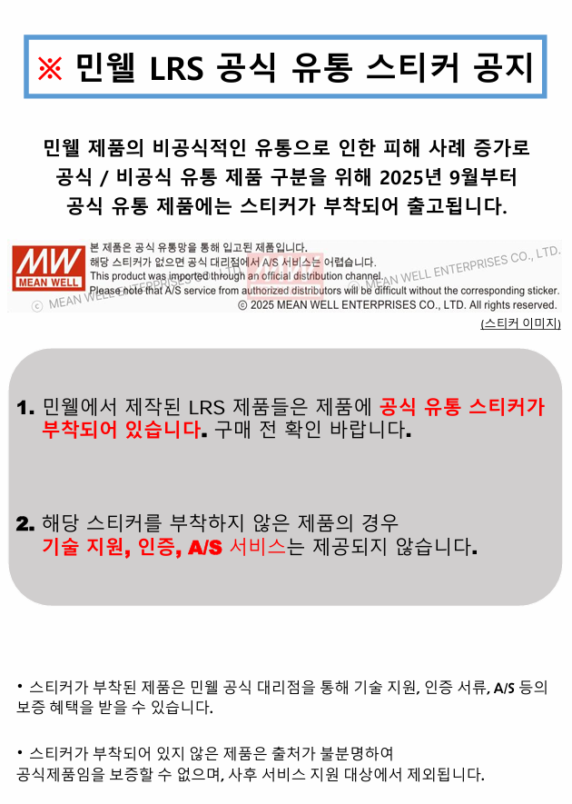 [°øÁö] MEANWELL ¹ÎÀ£ LRS °ø½Ä À¯Åë ½ºÆ¼Ä¿ ºÎÂø °øÁö